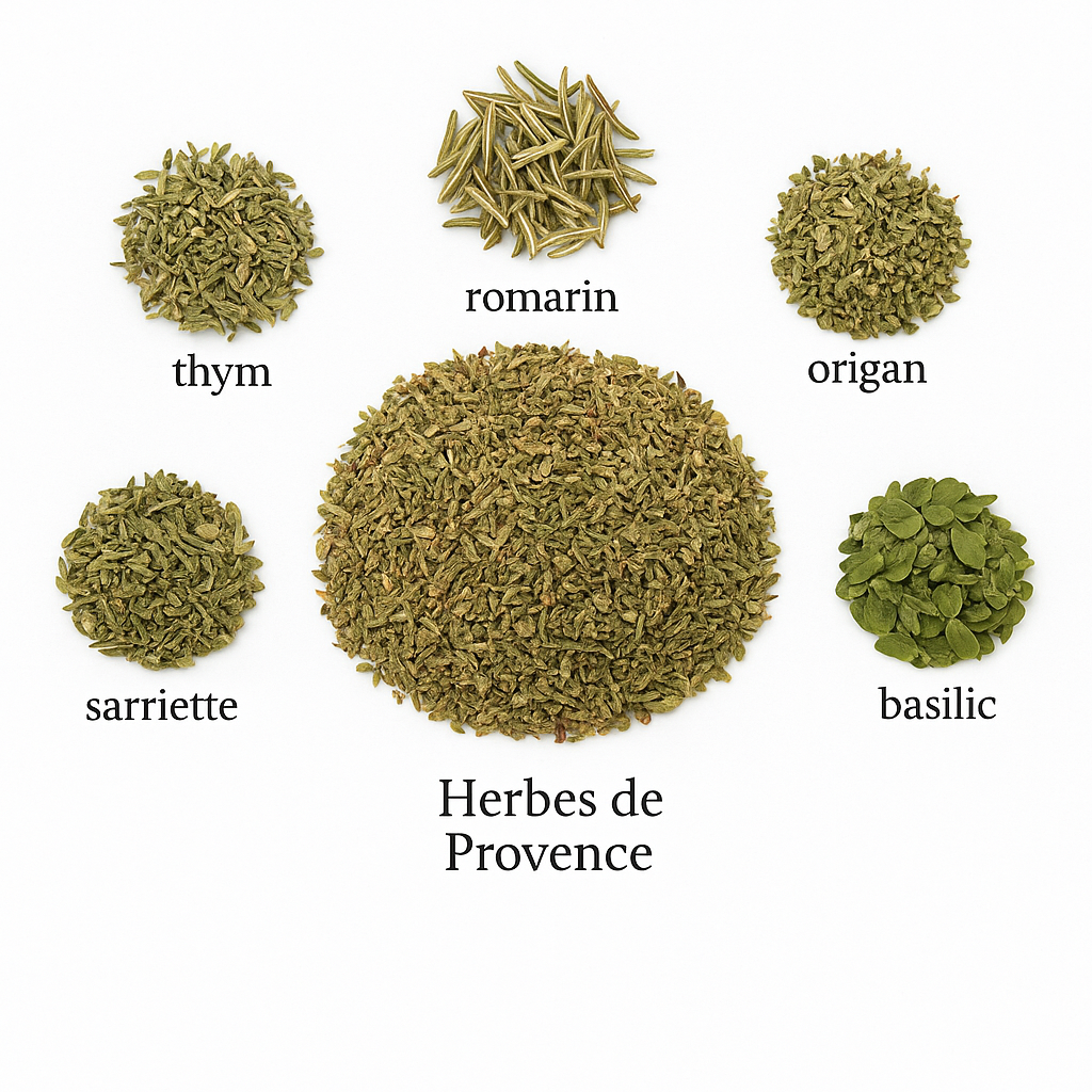 Un savant mélange d’aromates typiques du sud de la France : thym, romarin, sarriette, origan… Herbes de Provence apporte une note fraîche, parfumée et légèrement boisée, idéale pour relever vos viandes, grillades, sauces et charcuteries.