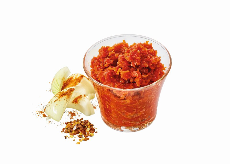 Avec MARIFIX PUSZTA-GOULASCH, réussissez facilement une goulasch savoureuse et parfumée. Cette sauce brun-rouge associe concentré de tomates, oignons et fines herbes pour retrouver le goût traditionnel de la cuisine hongroise. Elle peut être enrichie de légumes comme poivrons, oignons ou champignons, et se prête à toutes vos touches personnelles — par exemple en ajoutant une bière locale pour un caractère unique.
